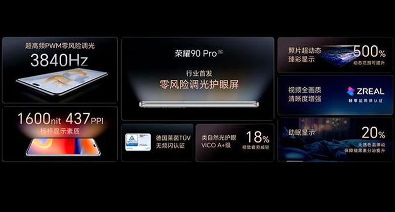 榮耀90系列帶來了2億像素寫真人像相機(jī),行業(yè)領(lǐng)先的3840Hz PWM零風(fēng)險(xiǎn)調(diào)光護(hù)眼屏,5000mAh超大電池+90W超級快充,全新MagicOS 7.1智慧體驗(yàn)等突破式升級,力求給用戶帶來全新體驗(yàn)。2億像素超清大底主攝,1200萬像素超廣角微距鏡頭,3200萬像素長焦人像鏡頭,這些強(qiáng)悍的影像硬件使得消費(fèi)者能輕松拍出單反風(fēng)格的寫真人像;采用3840Hz超高頻PWM調(diào)光,打造零風(fēng)險(xiǎn)調(diào)光級別的手機(jī)OLED屏幕以及VICO A+級類自然光護(hù)眼,有效降低視疲勞,給用戶帶來更好的實(shí)用體驗(yàn);全系搭載5000mAh高能量密度電池,超長續(xù)航手感輕薄,滿足用戶實(shí)際需求。